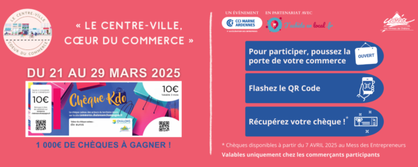 Du 21 au 29 mars, tentez de remporter l’un des 100 chèques cadeaux de 10€ mis en jeu en vous rendant chez les commerçants participants !