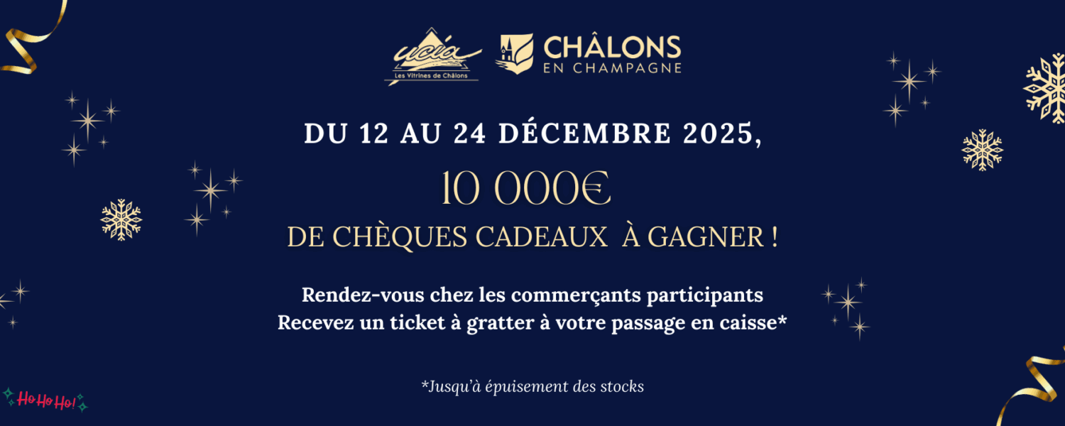 10 000€ de chèques et cartes cadeaux mis en jeu, et 2 000€ de cadeaux offerts par les commerçants châlonnais !